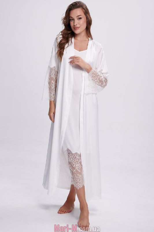 Длинный атласный халат с кружевом 2702/1 Shato
