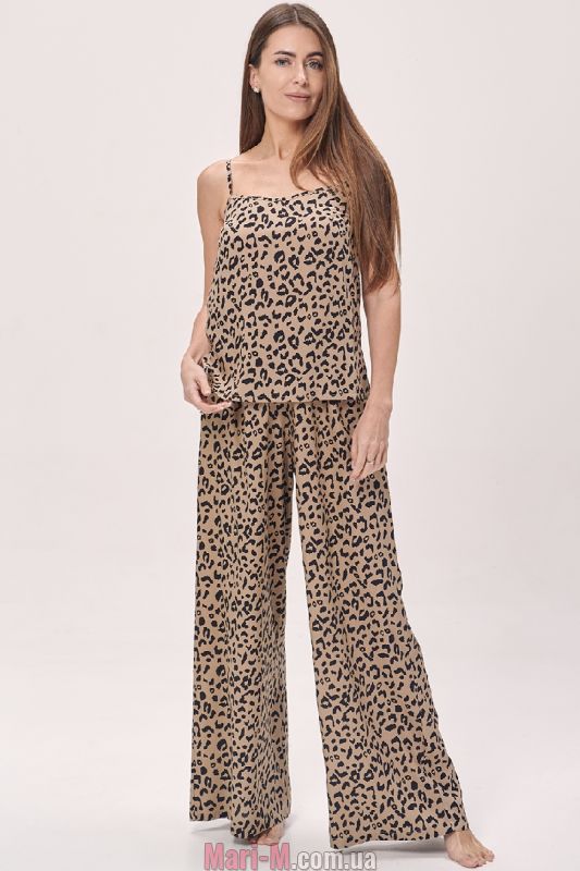 Свободные брюки из хлопка и вискозы 2633 Shato. Свободные брюки с эффектным анималистичным принтом выполнены из очень легкого и приятного материала с высоким содержанием хлопка. Комфортная мягкая резинка в поясе. Подходят как для сна, так и для отдыха дома. Состав: 80% хлопок, 20% вискоза. Майка в комплект не входит. Её можно приобрести по ссылке ниже на странице, в товарах Для комплектации.