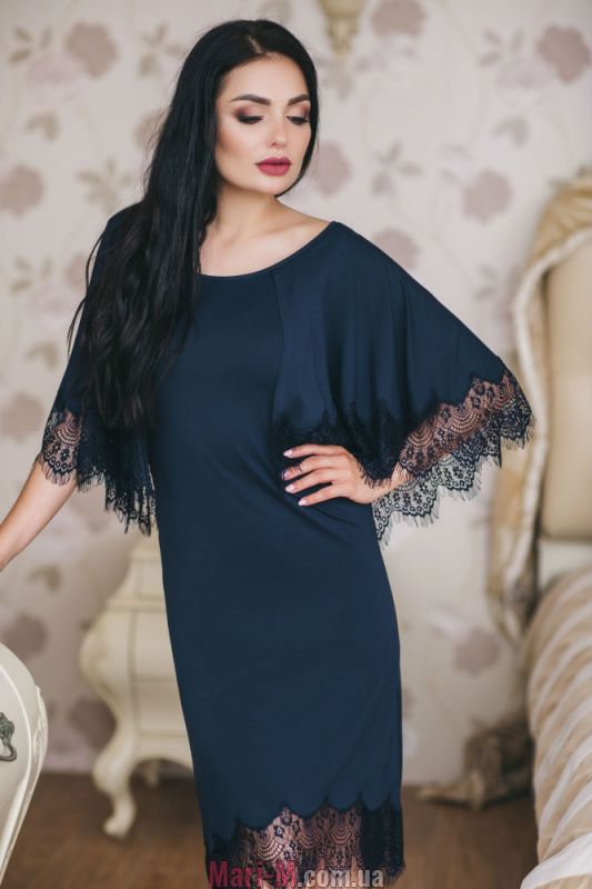 Домашнее платье/сорочка из вискозы с широкой кружевной оборкой 1313 Shato