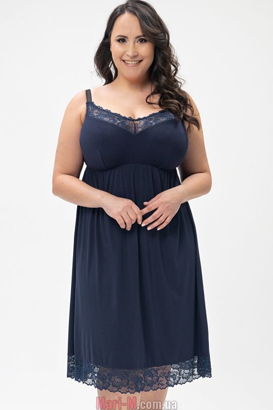 Ночная сорочка из вискозы с кружевом 2435 Shato. Женственная ночная сорочка из мягкого и приятного вискозного трикотажа. Отрезной лиф отделан мягким цветочным кружевом по линии декольте, спинка кружевная. Подол также украшен кружевом. Модель на тонких регулируемых бретелях, с завышенной линией талии и V-образным вырезом. Состав: 95% вискоза, 5% эластан.