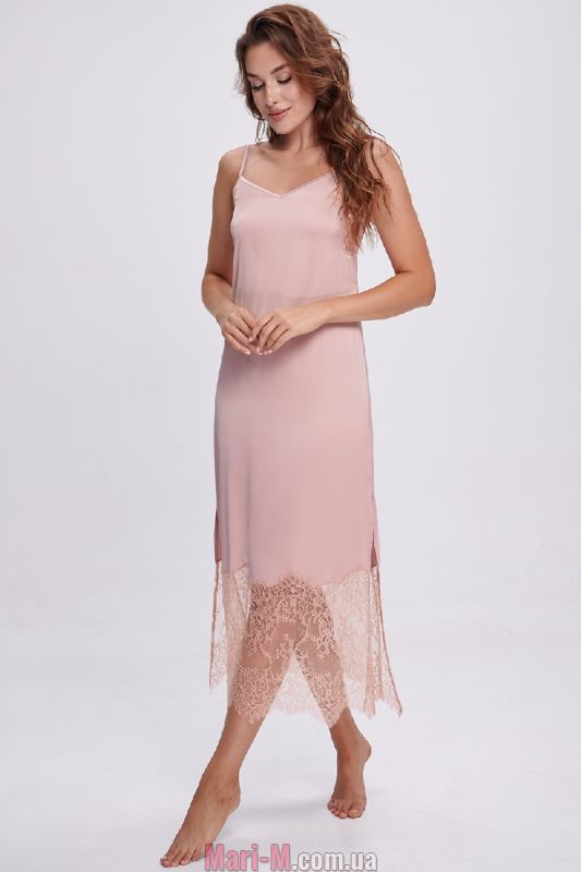Длинная атласная сорочка с кружевом 2702 Shato