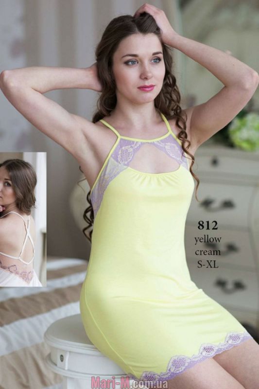 Сорочка из вискозы с кружевом 812 Shato. Невесомая ночная сорочка нежного цвета – отличный выбор для романтичных и стильных представительниц прекрасного пола. «Изюминка» ночнушки – элегантная полупрозрачная вставка в области декольте, которая продолжается на спинке. Модель идеально облегает фигуру. Тонкие ремешки перекрещиваются на спине. По низу декорирована кружевом. Состав: 95% вискоза, 5% эластан.