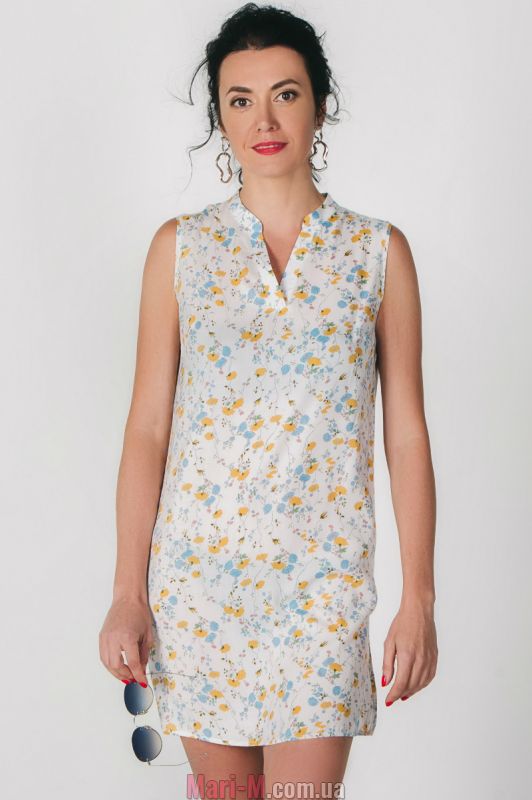 Короткая пляжная туника из хлопка ST 251 Shato. Туника изготовлена из тонкого хлопкового материала с нежным цветочным принтом. Модель прямого кроя, без рукавов, с неглубоким V-образным вырезом, и воротничком-стойкой, по бокам высокие разрезы. Состав: 80% хлопок, 20% эластан.