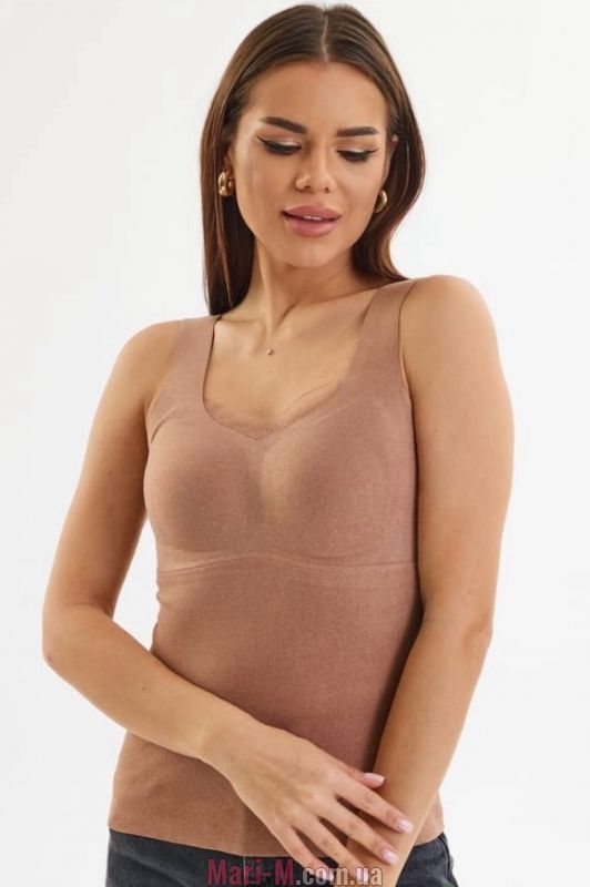 Термомайка с уплотненным лифом 8136 Lora Iris. Термомайка выполнена из очень приятного гладкого эластичного полотна с небольшим внутренним начесом и бесшовной обработкой края. Прекрасно облегает фигуру и сохраняет тепло. Модель на широких эластичных бретелях, с закрытой спинкой. Лиф с уплотняющими вкладышами из тонкого поролона в чашке. В зоне декольте декоративная вставка из прозрачной микросетки.