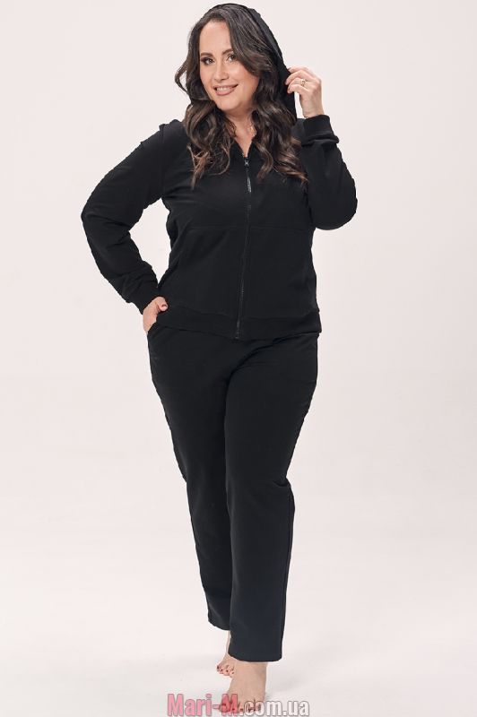 Женский домашний комплект из хлопка 1616 Wiktoria. Теплый домашний костюм из мягкого и приятного хлопкового полотна. В комплект входит толстовка на молнии и слегка зауженные к низу брюки. Кофта с боковыми карманами, капюшоном и пришивным поясом по низу, рукава с широкими манжетами. Брюки с мягкой резинкой в поясе и боковыми карманами. Состав: 95% хлопок, 5% эластан.