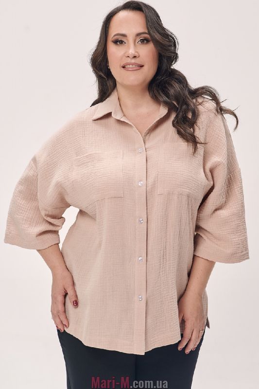 Хлопковая рубашка 1603 Wiktoria. Домашняя рубашка из легкого натурального хлопкового полотна. Рубашка свободного кроя, удлиненная, с отложным воротником, застегивается на пуговицы спереди. Широкие укороченные рукава со спущенной плечевой линией. По бокам небольшие разрезы. Накладные карманы на груди. Состав: 100% хлопок. Брюки в комплект не входят.