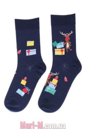 Хлопковые мужские носки W94.155 Swiateczne 865 Wola. Мягкие хлопковые носки с рождественским принтом. Состав: 87% хлопок, 11% полиамид, 2% эластан.