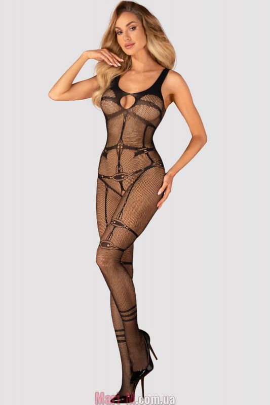 Бодистокинг-сетка с интимным вырезом Bodystocking N123 Obsessive. Эротический бодистокинг из мягкого эластичного сетчатого полотна с интригующим узором, имитирующим шлейки. В шаге пикантный вырез. Состав: 88% полиамид, 12% эластан.