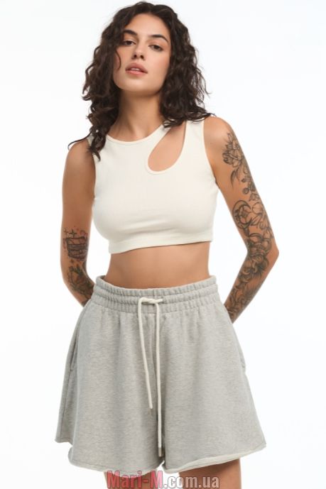 Мягкий хлопковый топ с вырезом-каплей L028tr Rita Luna. Оригинальный кроп-топ с декоративным вырезом в форме капли на одном плече спереди и сзади. Выполнен из эластичного хлопкового полотна в тонкий рубчик. Модель с широкими бретелями и неглубоким круглым вырезом горловины. Состав: 98% хлопок, 2% эластан.