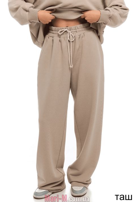 Брюки палаццо LC007p Koko Luna. Трендовые брюки палаццо спортивного стиля из полотна-трехнитки с высоким содержанием хлопка. Модель прямого кроя, с удлиненными штанинами. В талии широкий эластичный пояс со шнурком на кулиске. Боковые карманы, сзади накладной карман. Большемерные. Могут сочетаться с любым верхом из коллекции. Состав: 58% хлопок, 42% полиэстер.