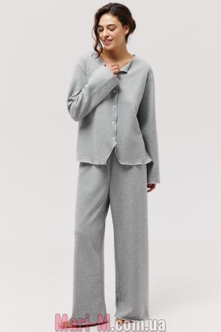 Утепленная пижама LP 026 Siri Luna. Свободная пижама из утепленного хлопкового трикотажного полотна (рибана с начесом). В комплект входит кардиган прямого кроя с застежкой на пуговицы спереди и широкие брюки-кюлоты на мягкой резинке в поясе. Края изделий отделаны плоским швом.