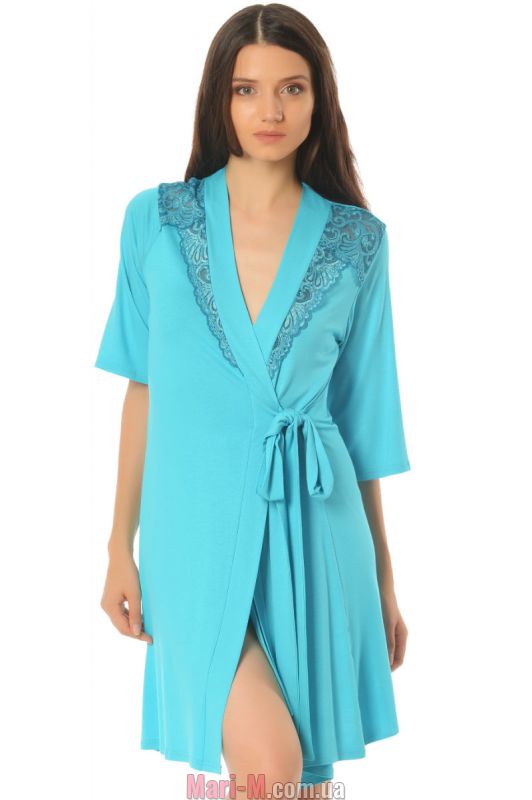 Халат из вискозы Х-М-19 лазурный Violet Delux. Выполнен из вискозы и кружева. Цвет как на фото. Состав: 95% вискоза, 5% эластан.