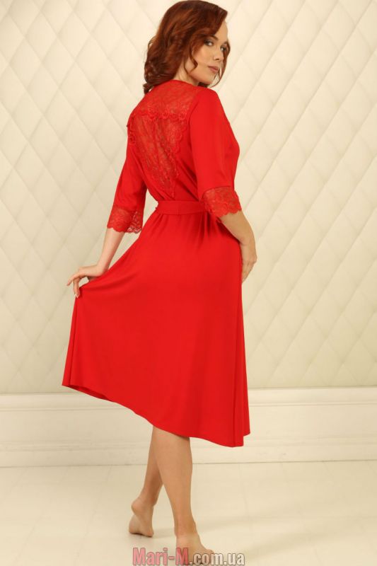 Халат из вискозы Х-М-33 кармин Violet Delux. Выполнен из вискозы и кружева. Цвет как на фото. Состав: 95% вискоза, 5% эластан.