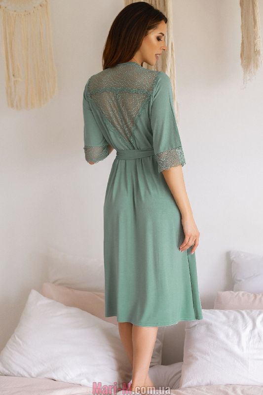 Халат из вискозы Х-М-33 чайное дерево Violet Delux. Выполнен из вискозы и кружева. Цвет как на фото. Состав: 95% вискоза, 5% эластан.