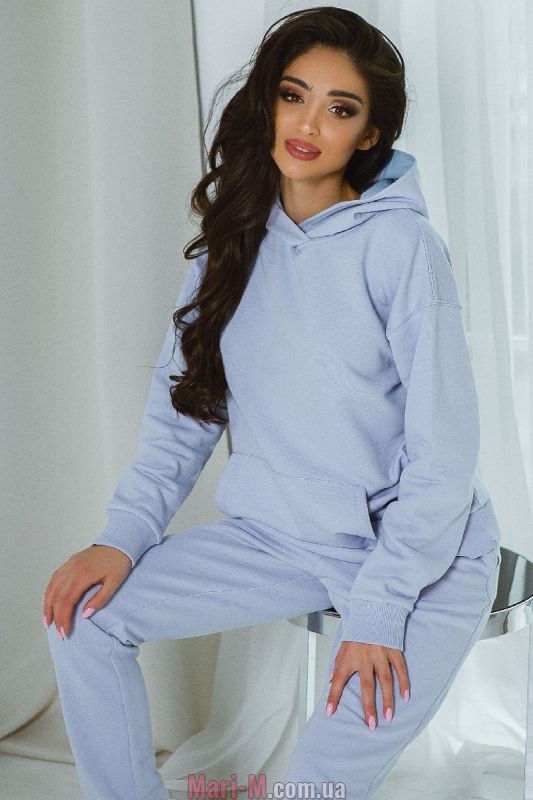 Хлопковый костюм для дома К-М-2 голубой Violet Delux. Комплект выполнен из мягкого хлопкового трикотажа, состоит из удобных штанов с боковыми карманами на манжетах снизу и кофты с длинными рукавами с широкими манжетами, капюшоном и карманом-кенгуру. Цвет как на фото. Состав: 100% хлопок.