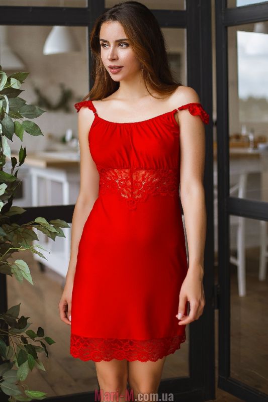 Ночная сорочка с кружевом НС-М-104 кармин Violet Delux. Выполнена из вискозы и кружева. Цвет как на фото. Состав: 95% вискоза, 5% эластан.