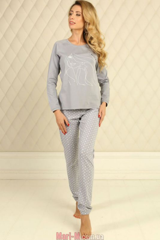 Хлопковая пижама П-М-58 серая со звездочками Violet Delux. Выполнена из хлопка. Цвет как на фото. Состав: 92% хлопок, 8% эластан.