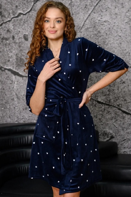 Темно-синий велюровый халат с принтом 2411-2 Bahar