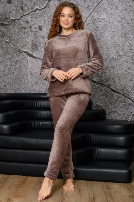Коричневая пижама из велсофта с фактурным узором 5010-9 Bahar