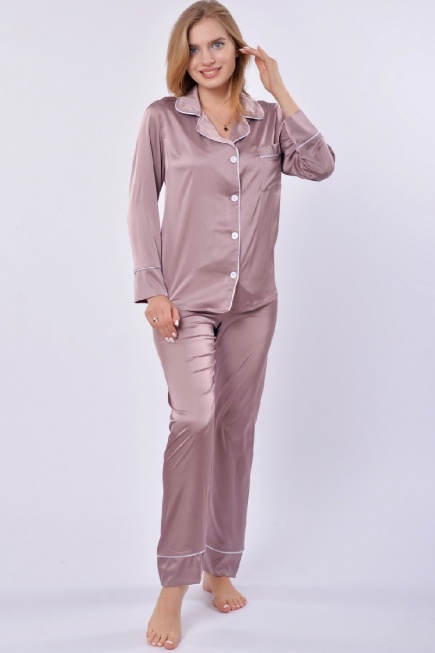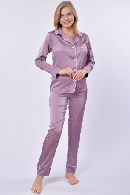 Розово-лиловая шелковая пижама с принтом 4210-7 Bahar