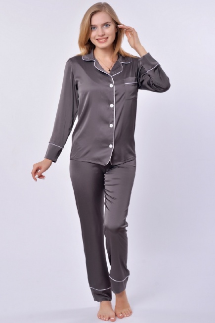 Длинный темно-серый шелковый халат 2900-1 Bahar