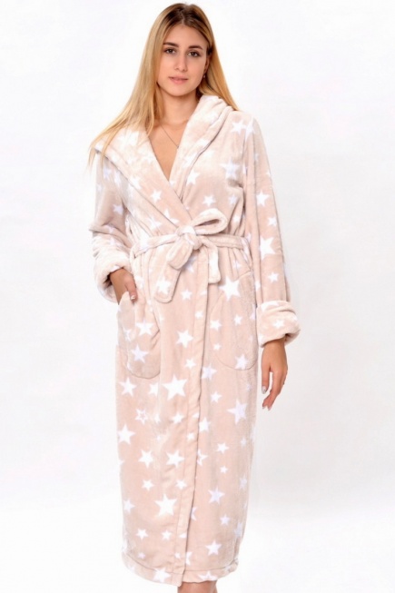 Бежевый теплый женский халат из велсофта 2200-4 Bahar