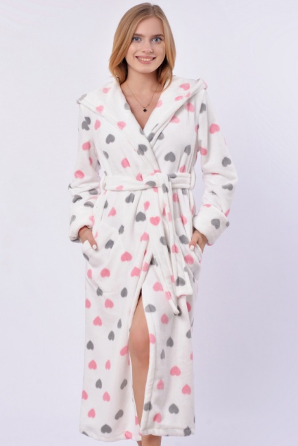 Розовый длинный теплый халат из велсофта 2201-7 Bahar