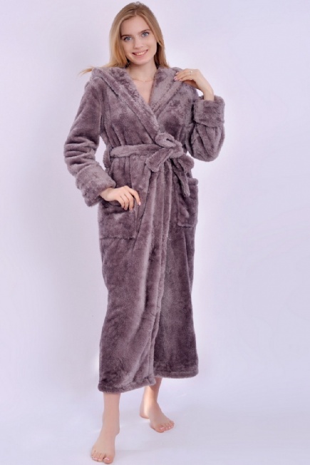 Лиловый длинный теплый халат из велсофта 2201-1 Bahar