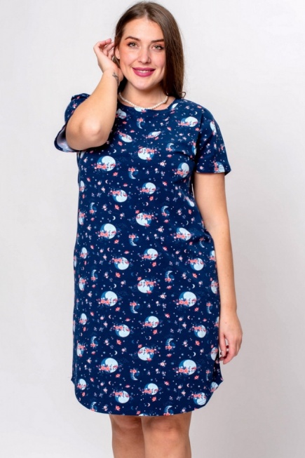Темно-синяя ночная сорочка из хлопка 0008-4 Bahar