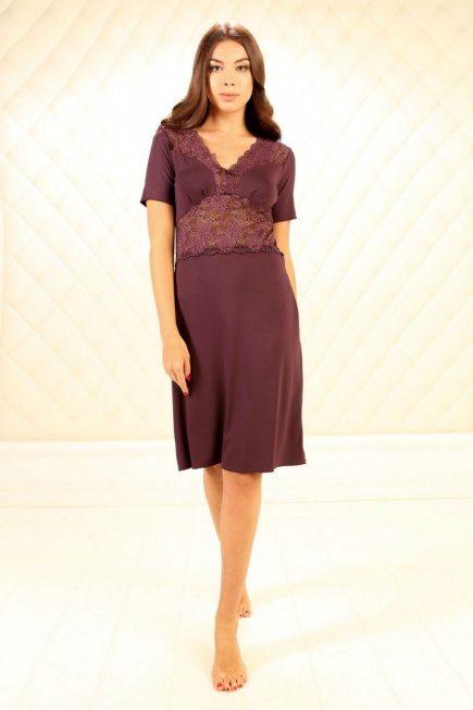 Ночная сорочка с кружевом НС-М-86 сливовое вино Violet Delux