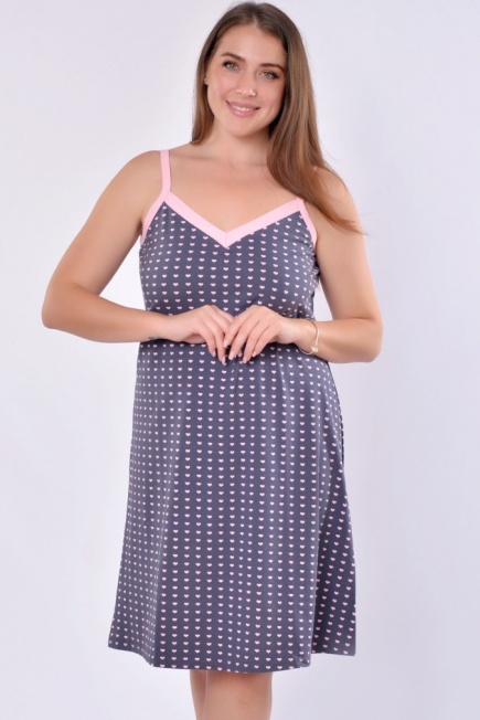 Серая хлопковая сорочка на тонких бретелях 0101-6 Bahar