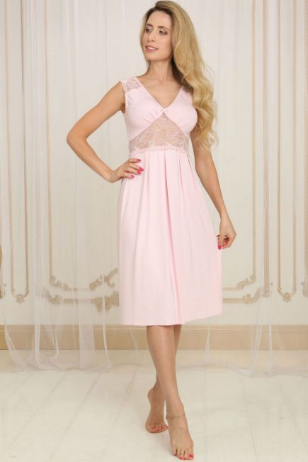 Ночная сорочка с кружевом НС-М-83 розовая Violet Delux