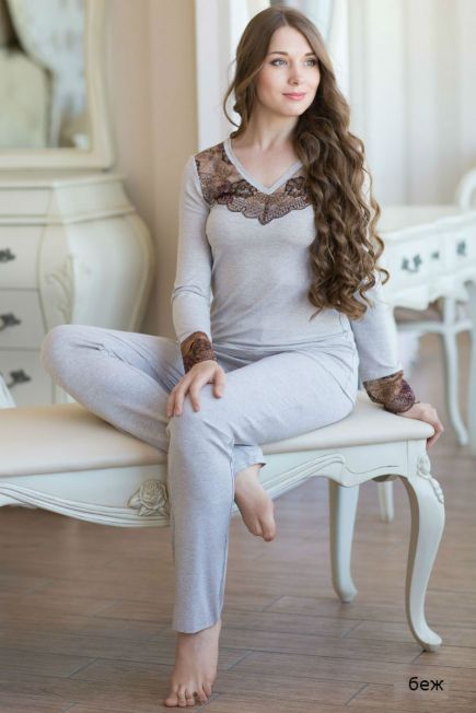 Пижама из вискозы с кружевными манжетами 906 Shato